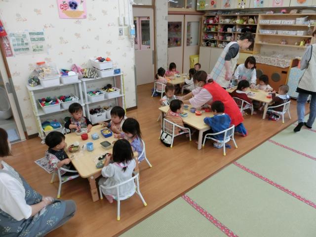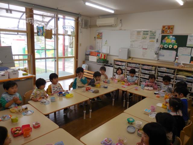 今日のひよこぐみは、園外保育でしたが天候が悪かった為室内で過ごしています。