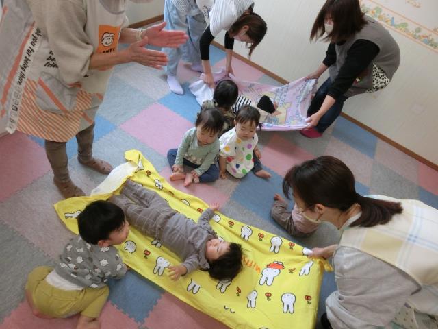 初めて遊ぶ子もいましたが、不安になることなく先生とのふれあいを楽しんでいました。