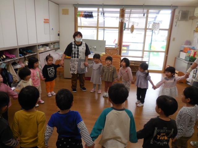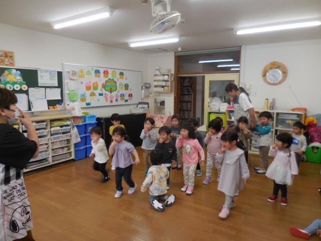 「おせんたく」「糸ぐるま」「あぶくたった」「だるまさんがころんだ(動物)」をして遊んでいます。