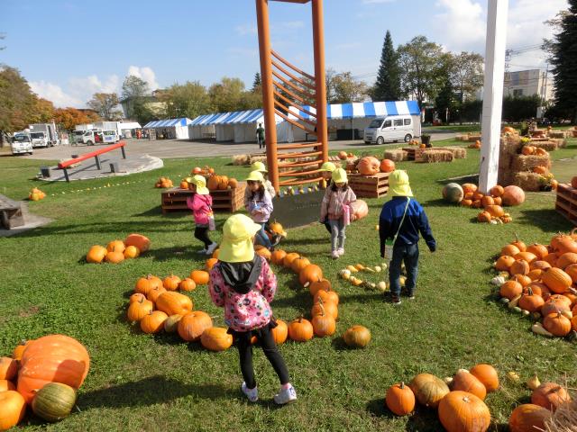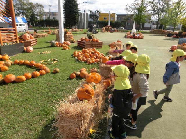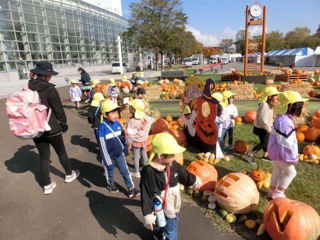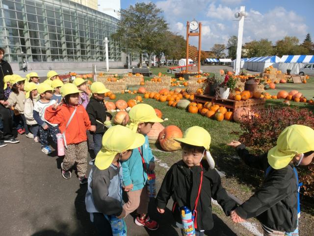今日のちゅうりっぷぐみは、製作を完成させた後芸文方面にお散歩に行き、ハロウィンのカボチャや菊の花を見てきました!