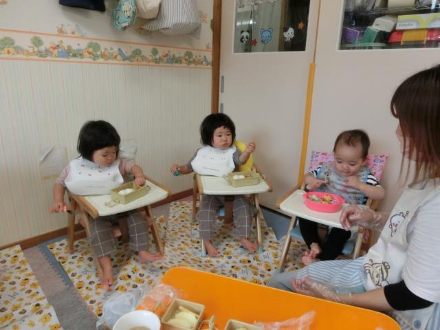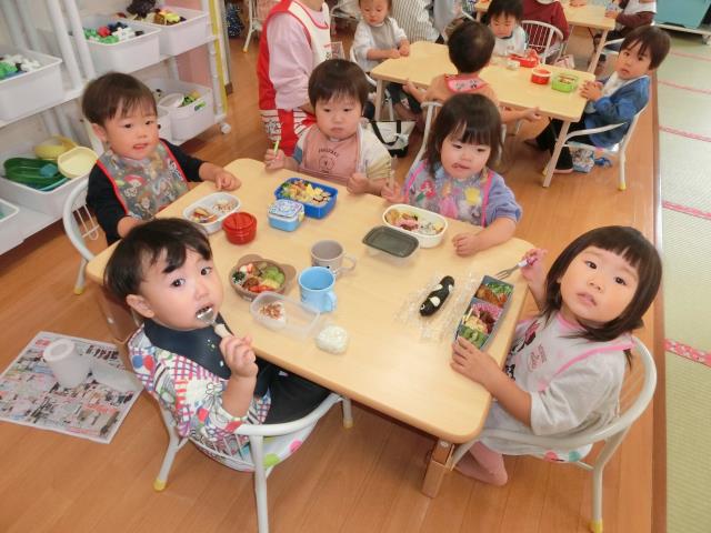 お弁当の時間には、にこにこ笑顔で美味しそうに食べていましたよ。