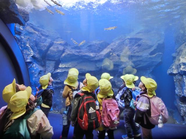今日のすみれぐみは、今年度最後の園外保育でバスに乗って『山の水族館』へ出掛けてきました。