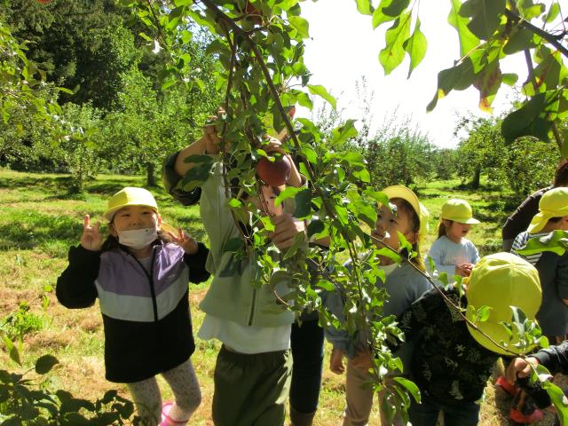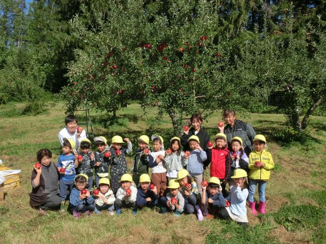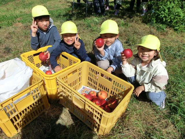 大きなりんごを手に満面の笑顔の子ども達でした。