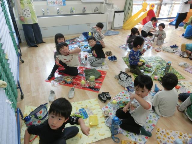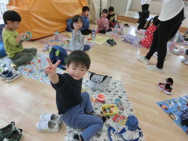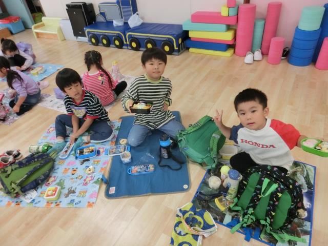 残念ながら雨と気温が低かった為、公園へはいかず園内で過ごしています!