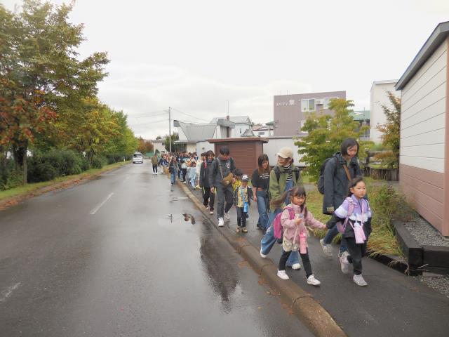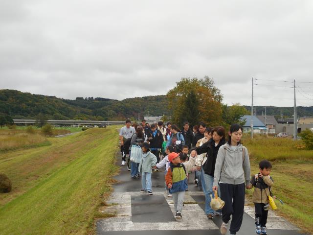 朝から小雨が降っていてお天気が心配でしたが、歩きチームが出発する時には雨も上がり一安心。