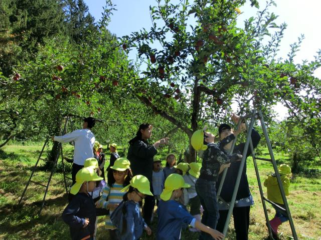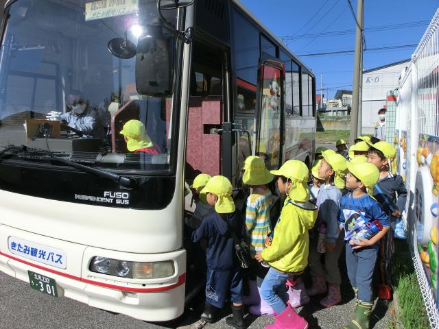 今日のすみれぐみは、バスに乗ってりんご狩りに行って来ました。
