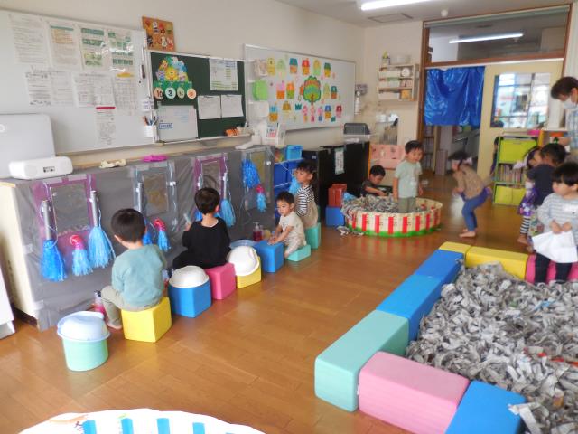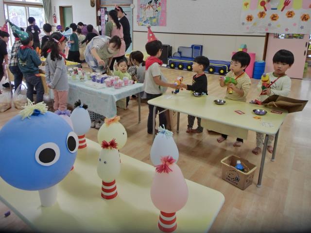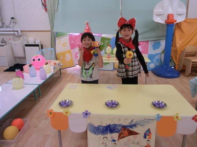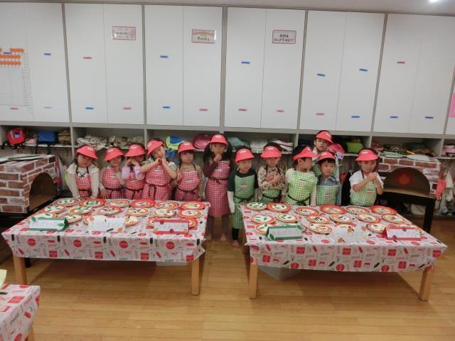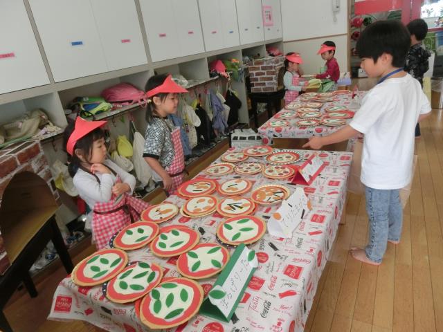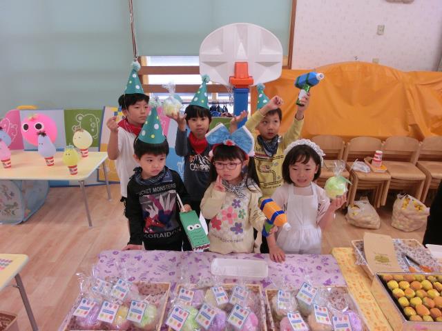 たんぽぽぐみは『お風呂屋さん』ちゅうりっぷぐみは『ピザ屋さん』さくらぐみは『おばけ屋敷』すみれぐみは『すみれワンダーランド』に取り組みました。