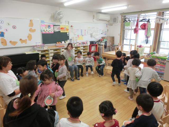 「爆弾ゲーム」「イス取りゲーム」「ハンカチ落とし」「フルーツバスケット」を行いました。