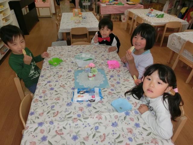 レストランでは小さいお友だちも、いつもと違った雰囲気の中でのおやつとなり、ニコニコで食べていましたよ。