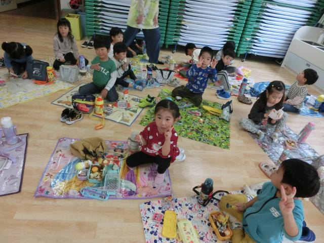 お楽しみのお弁当は、さくらさんのお兄さんお姉さんと一緒にホールで食べましたよ!!