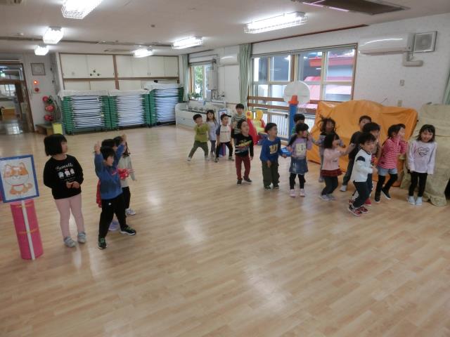 ひよこ・つくし・たんぽぽぐみは、『チーム対抗リレー』『動物に変身ゲーム』『お菓子取りゲ―ム』をしました。