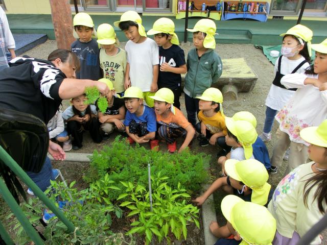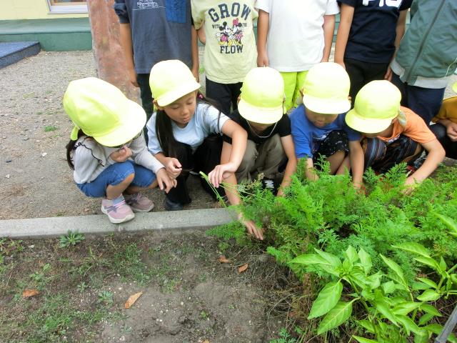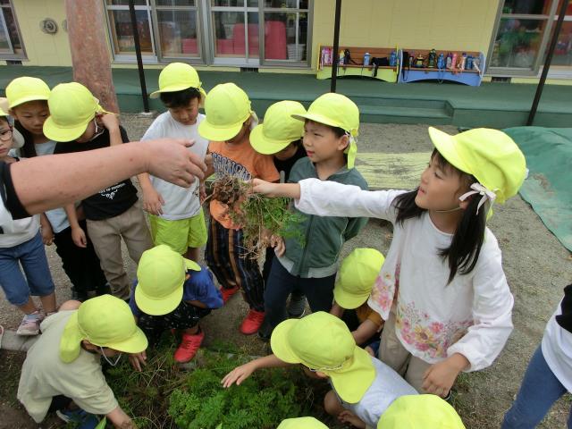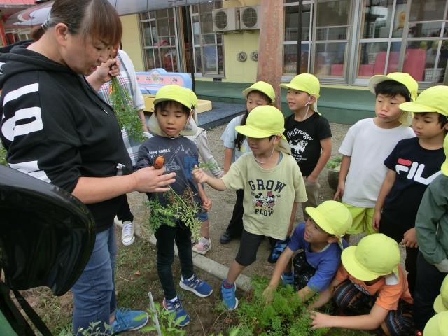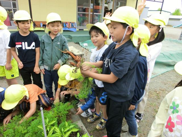 小さな種から育てた人参が大きく育ったことにビックリしていた子ども達。
