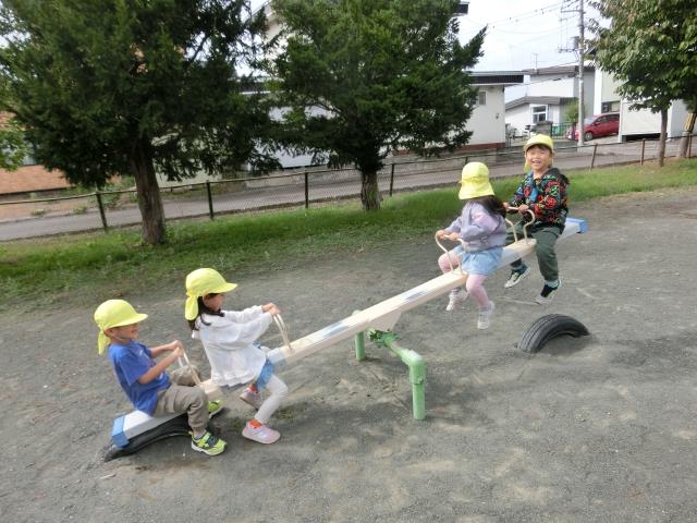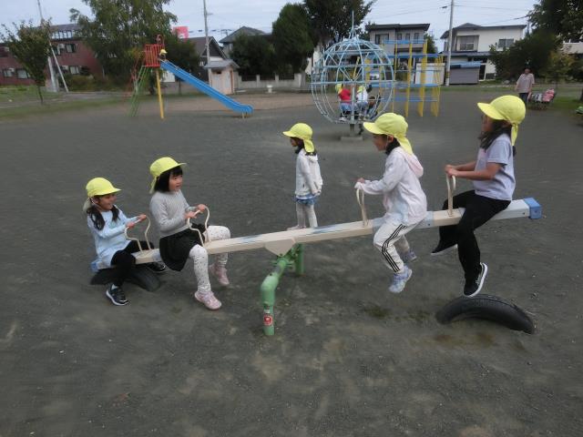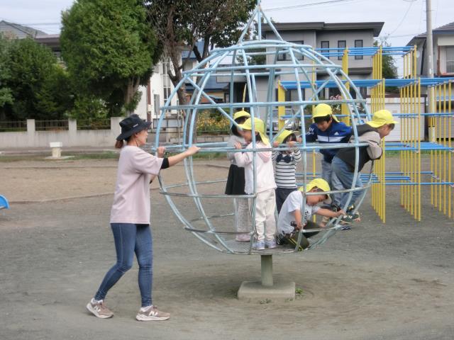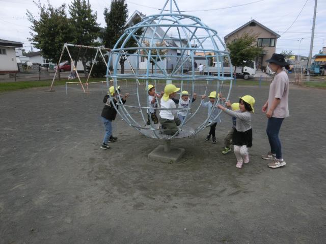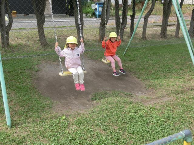 公園についてからは、ブランコ・シーソー・回転遊具などの遊具で遊んだり、十字架鬼をしたり、元気いっぱい楽しく遊んできましたよ!
