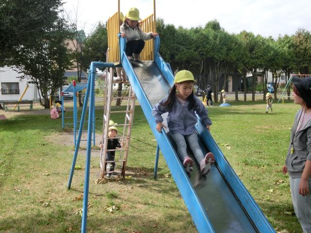 すべり台にも挑戦し、慎重に階段を上って滑り降りて喜んでいた子ども達です。