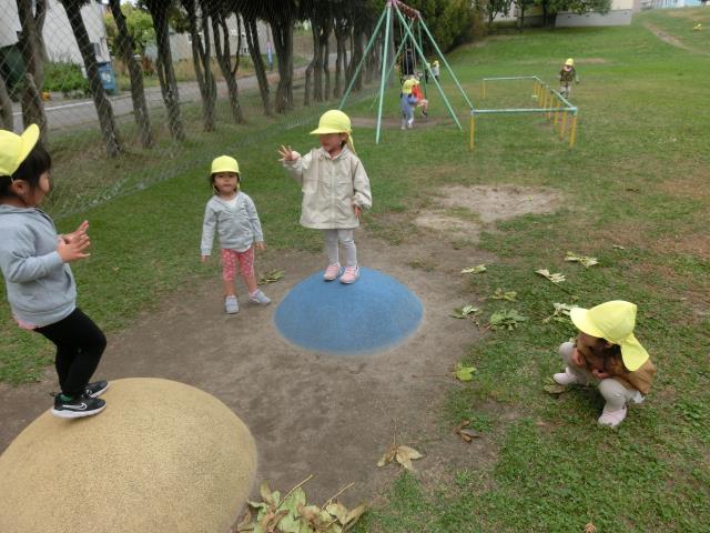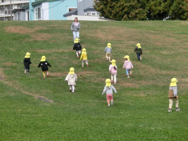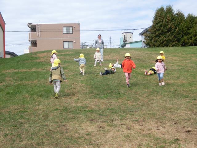 公園では遊具で遊んだり、お山からゴロゴロ転がったりと寒さに負けず楽しんでいました。