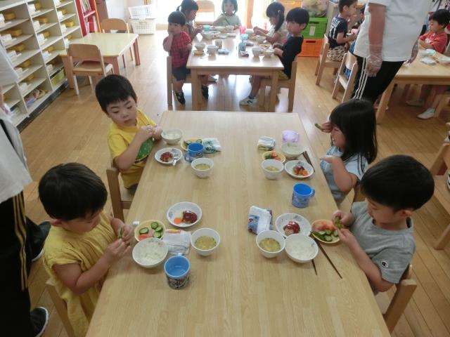 お弁当タイムでは、お友だちとお話を楽しみながら、喜んで食べていましたよ♪