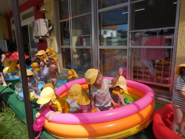 今日のたんぽぽぐみは、今年度最後のプールあそびをしています。