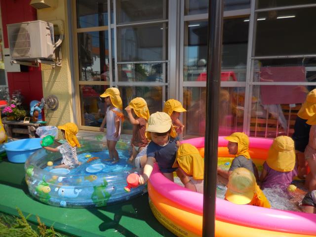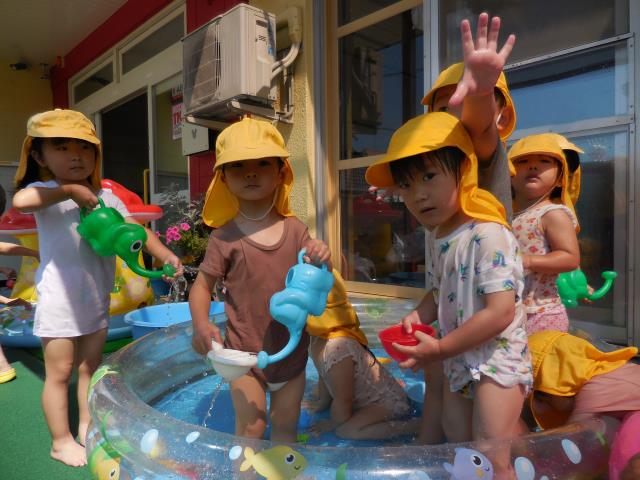水鉄砲やジョーロ、金魚等それぞれ使いたい玩具を使って元気いっぱい遊んでいましたよ!!