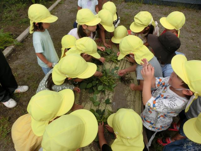 今日のちゅうりっぷぐみは、野菜の収穫第3弾として「枝豆」を収穫しています。