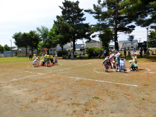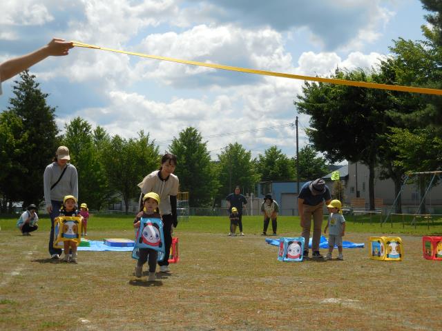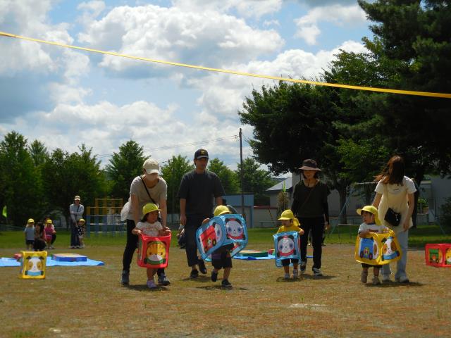 体操・しっぽとり・玉入れなどお父さんお母さんと一緒に参加でき、嬉しそうだった子ども達。