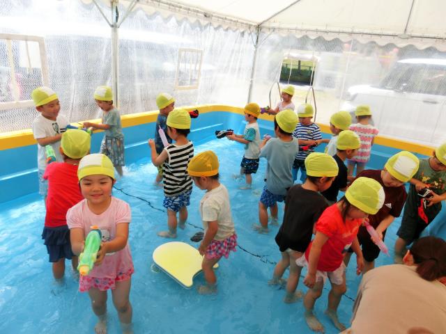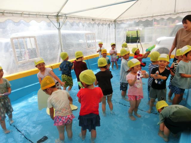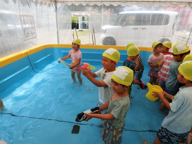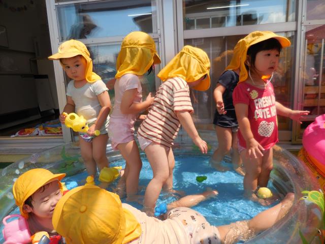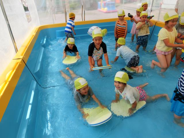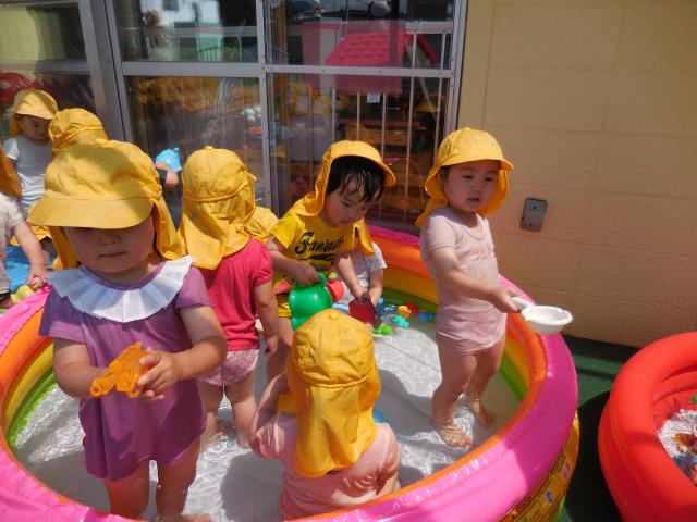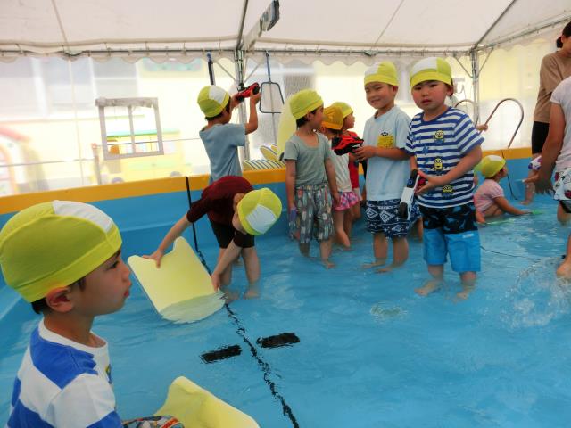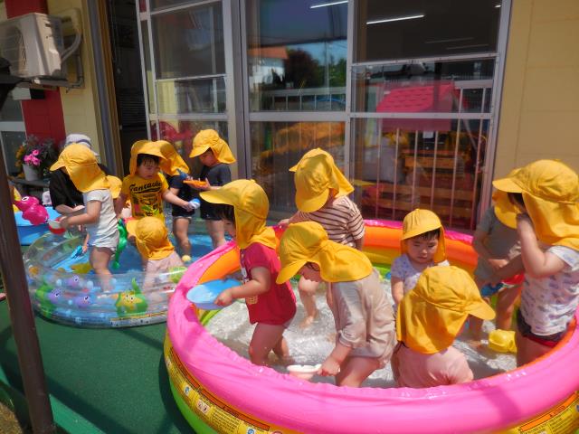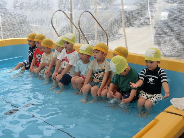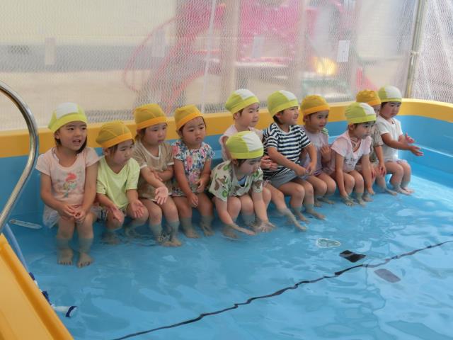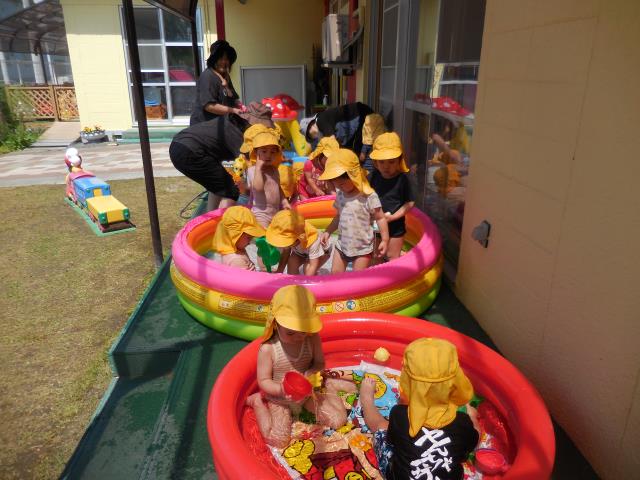 プールに入ることを伝えると「やったー!」と大喜びだった子ども達。