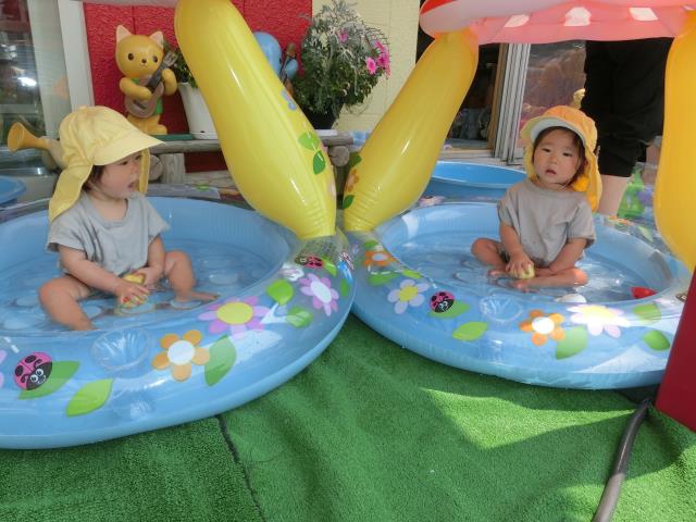 顔に水がかかっても怖がる事なく、楽しんでいたひよこぐみさんです。