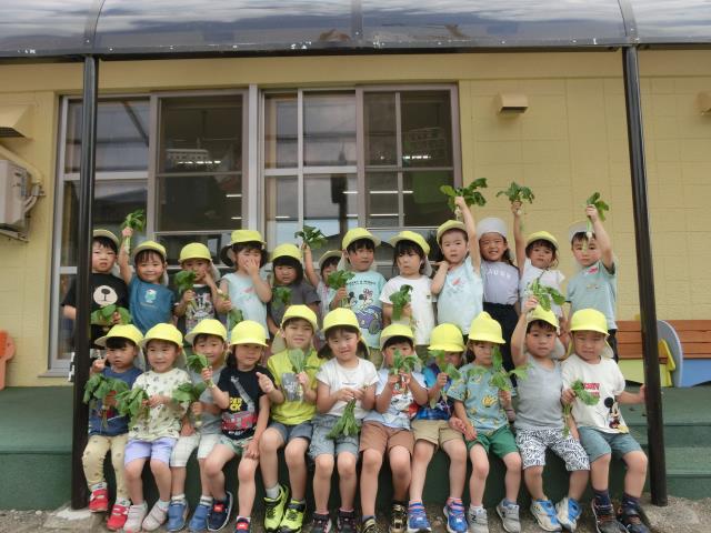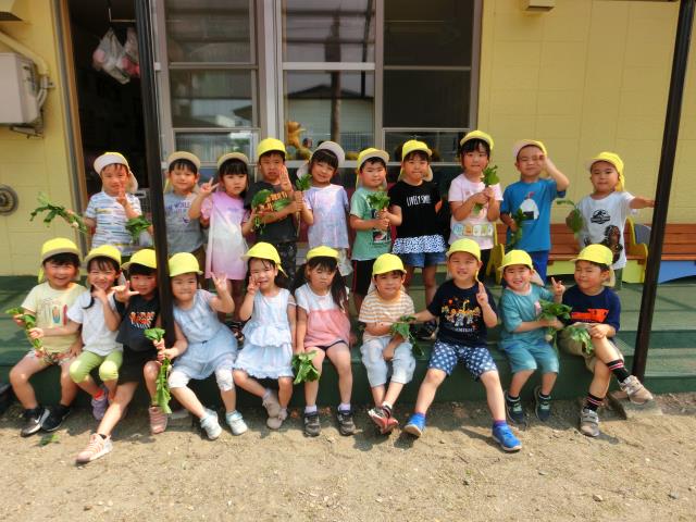 今日のさくらぐみは、畑で育てているカブの収穫をしました!!