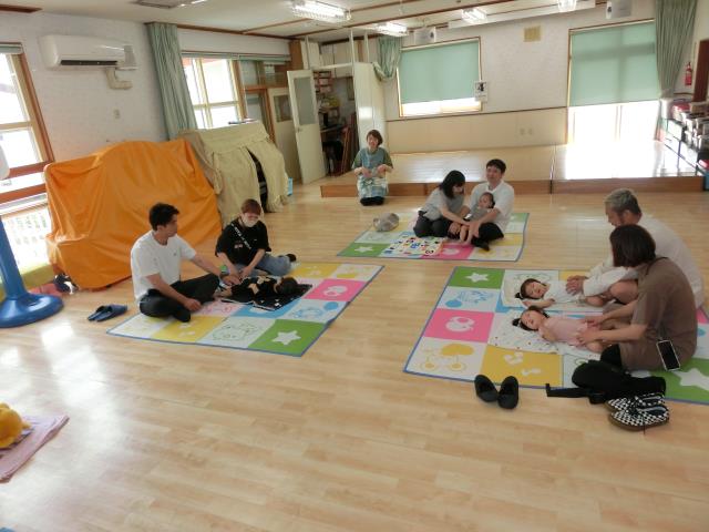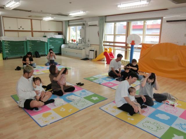 ふれあい遊びをしたり、給食を食べてお父さんお母さんと一緒に、楽しく過ごせていたひよこ組さんです。