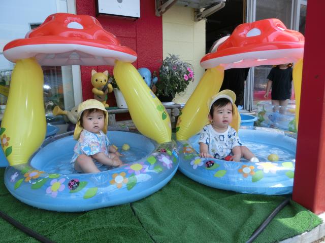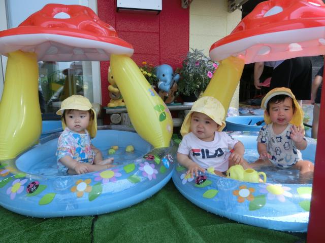 プールが園庭にできた時から楽しみにしていたので、「楽しいね!」と大喜びのちゅうりっぷさんでした。