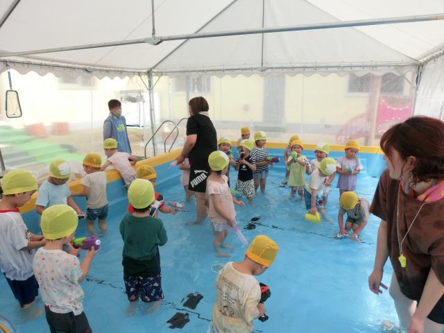 今日のたんぽぽぐみは、今年度初のプール遊びをしました。
