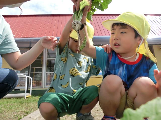 自分たちでかぶを抜いて「おー!」「すごーい」と喜んでいました。