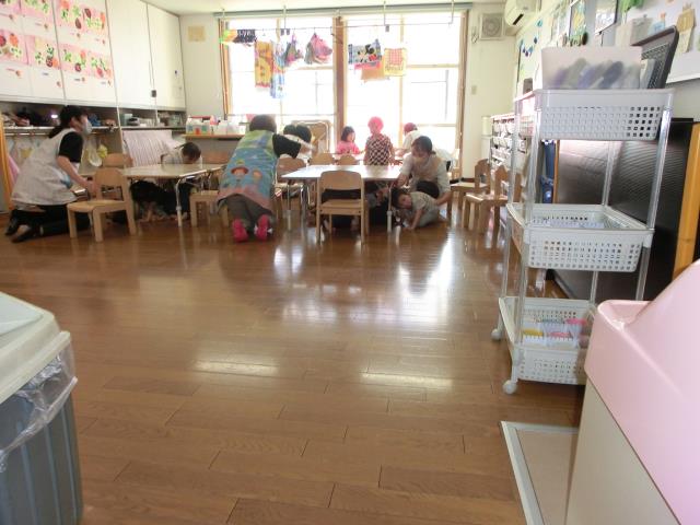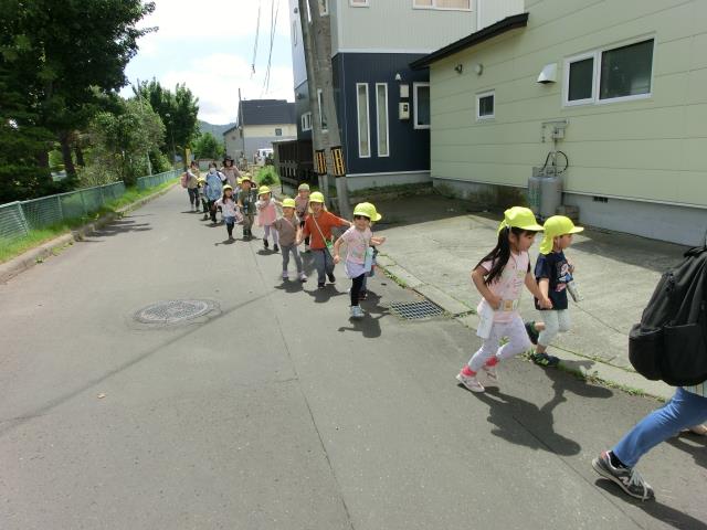 久しぶりの避難訓練にドキドキしているお友だちもいましたが、お話をしっかりと聞いて上手に避難している子ども達でした。