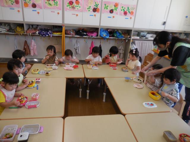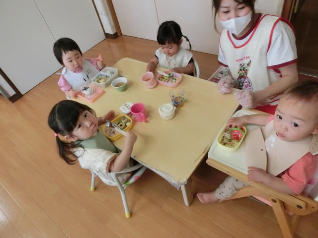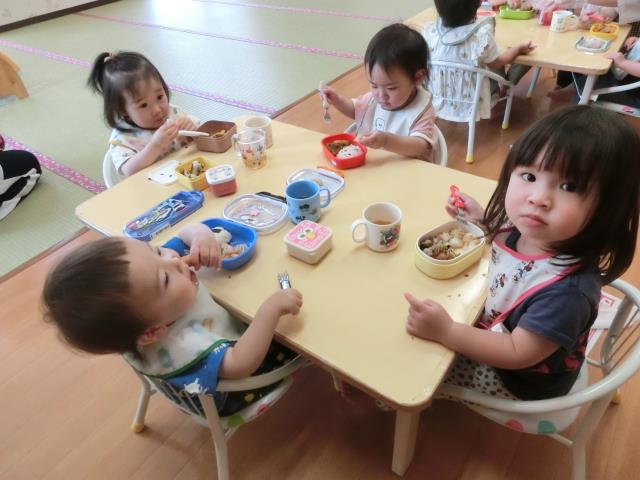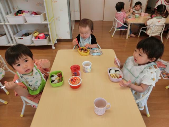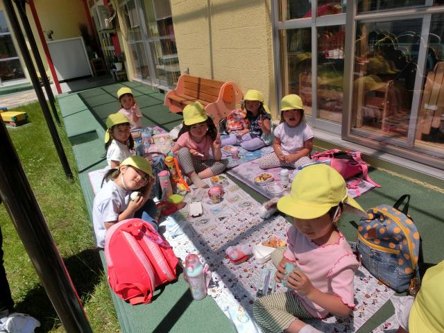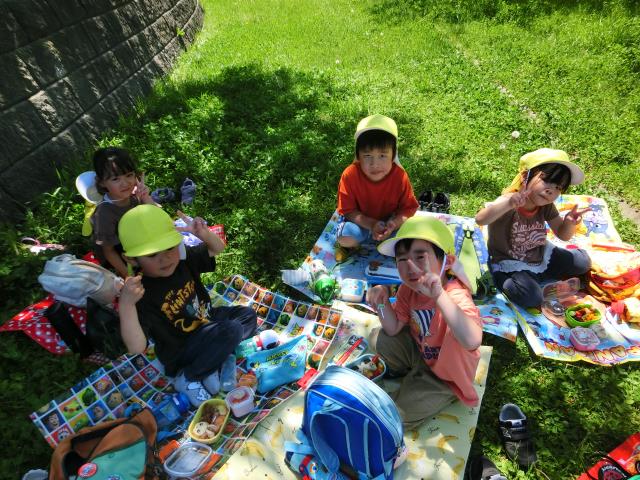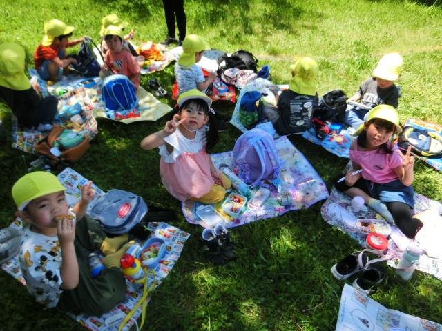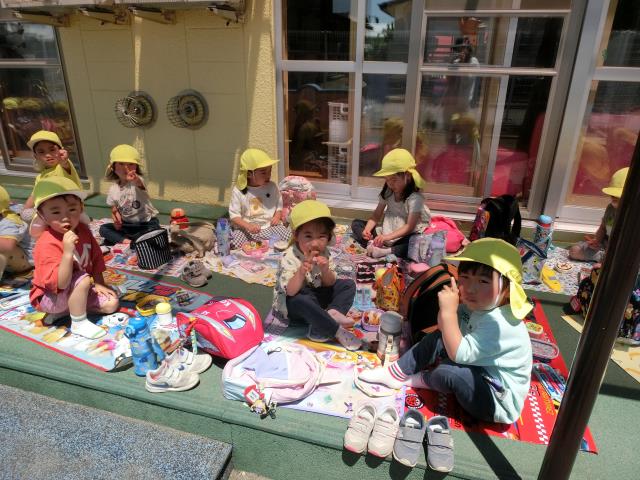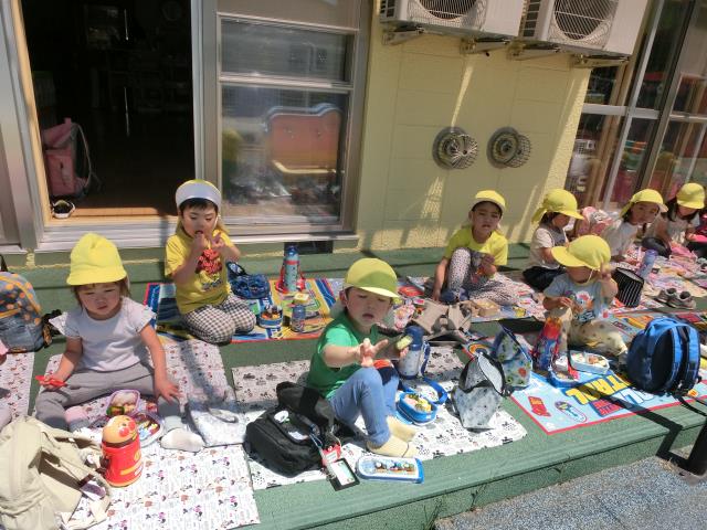 お外で食べるお弁当はとても美味しかったようで、喜んで食べていました。