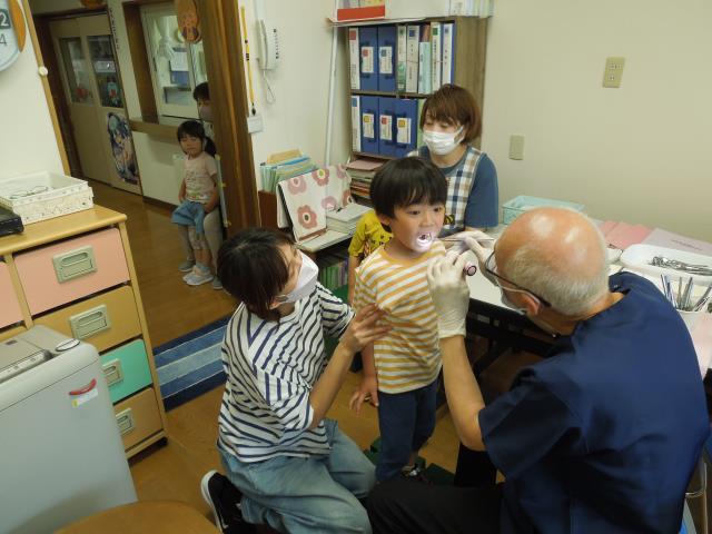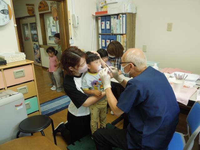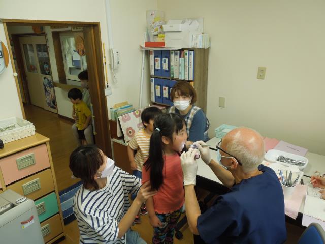 今日は午前中に歯科検診、午睡前に内科検診を行っています。