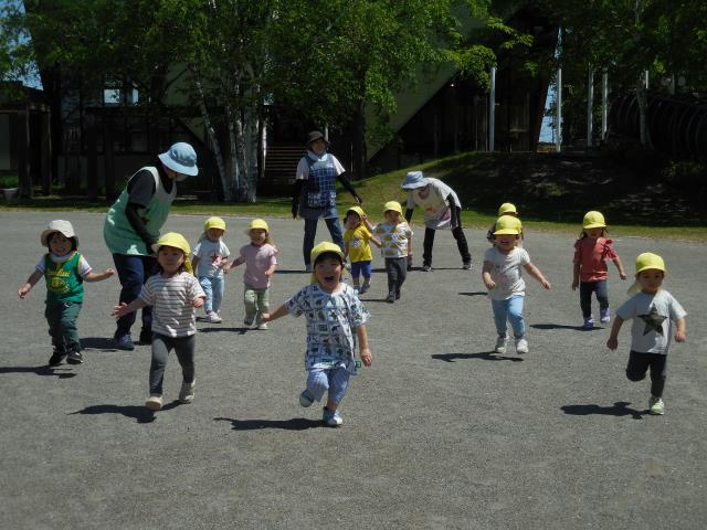 今日のちゅうりっぷぐみは、天気にも恵まれた中、園外保育で白樺公園に行っています。