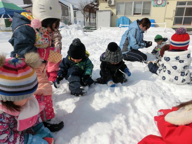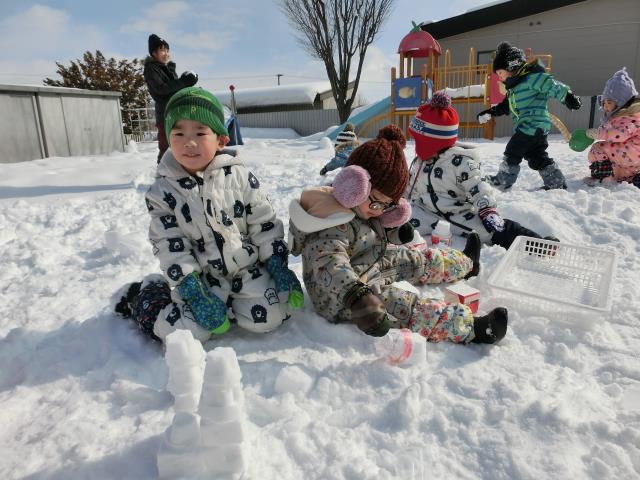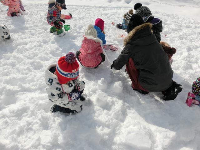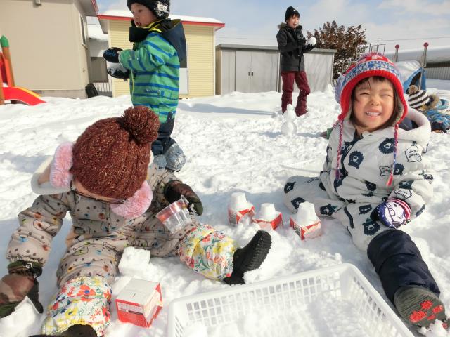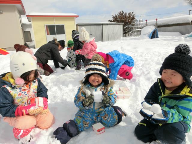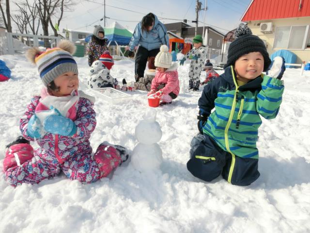 雪だるまを作ったり、ソリに乗ったり・引っ張ったり、雪合戦をしたりと、思い切り体を動かしました。