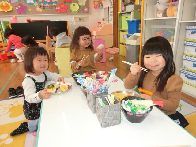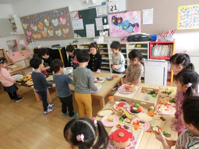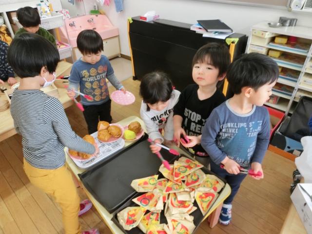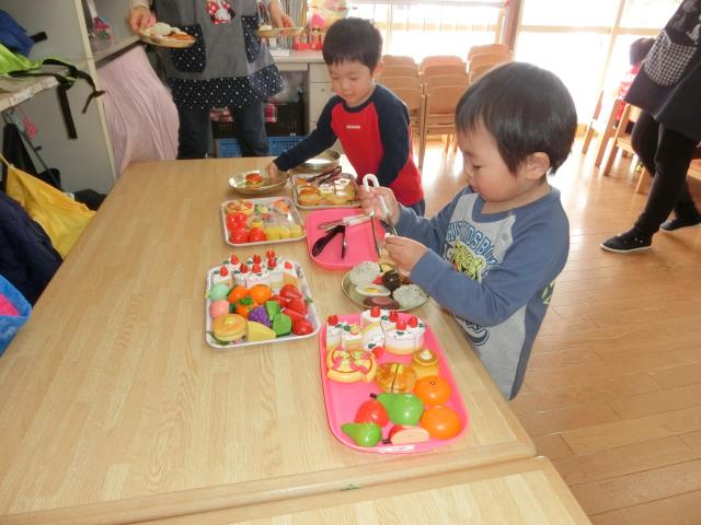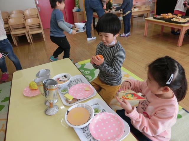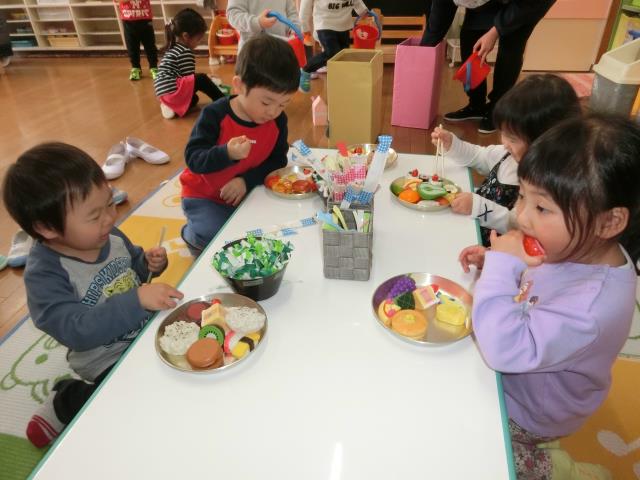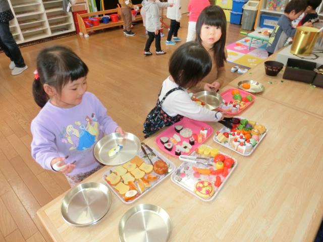 ”バイキング”は、おもちゃの食べ物を使い自分で好きな物をチョイスして、ゆったり優雅に食べました。