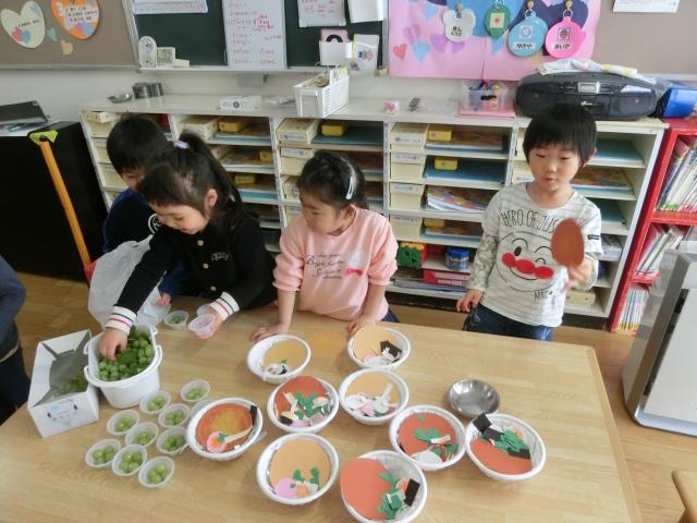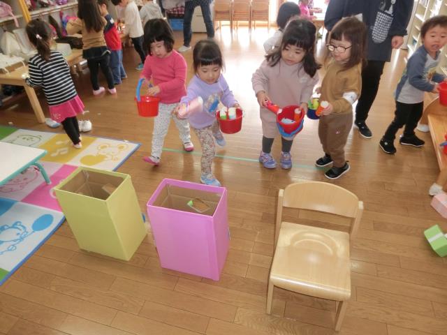以上児さんは、新年お楽しみ会のリベンジで「的当てゲーム」を行いました。