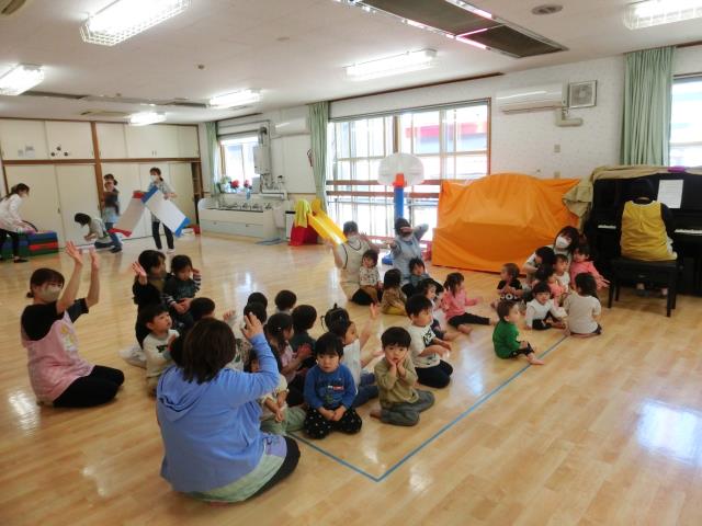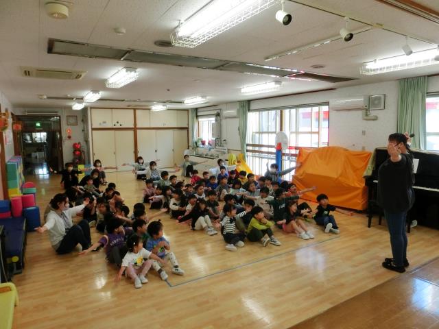 2部制で行い、第一部は、ひよこぐみ・つくしぐみ・たんぽぽぐみが参加しています。