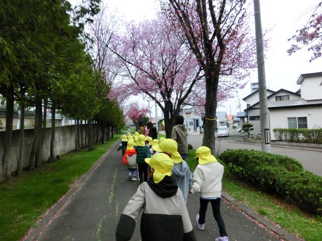 「きれいだね~」と少し桜を見てから、雨が強くなる前に園に戻ってきたさくらぐみさん。