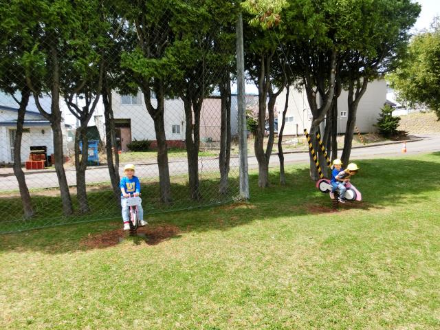 今日のさくらぐみは、園庭で遊んでいます。