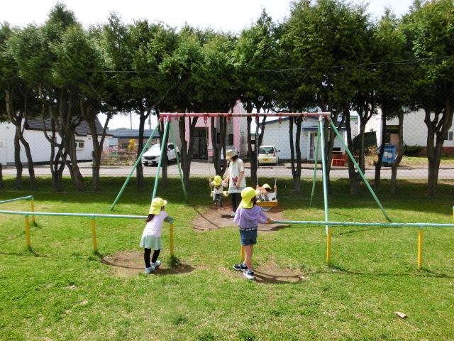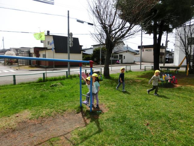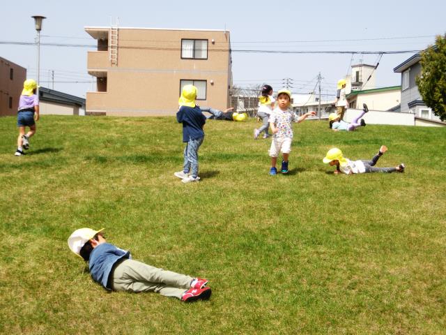 みんなで「ドロケイ」をしてたくさん走りまわってから、園庭の遊具で遊びました。