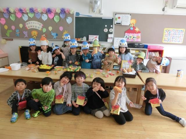 お店屋さんはお金を受け取る人、コッペパンを作る人等、自分達で話し合って決めました。