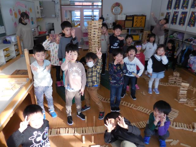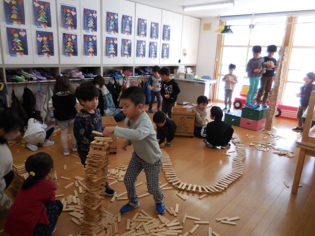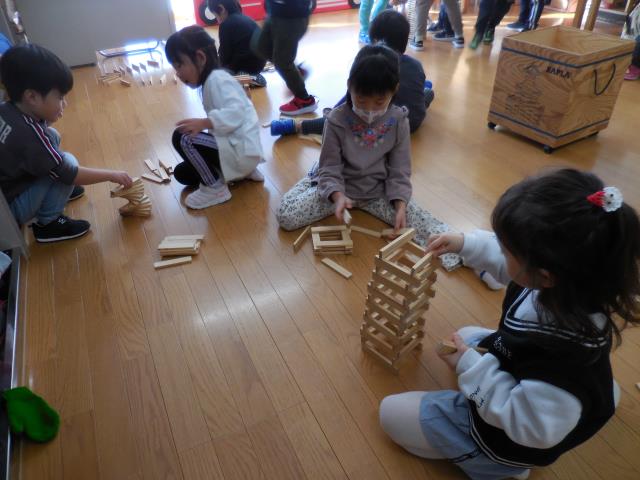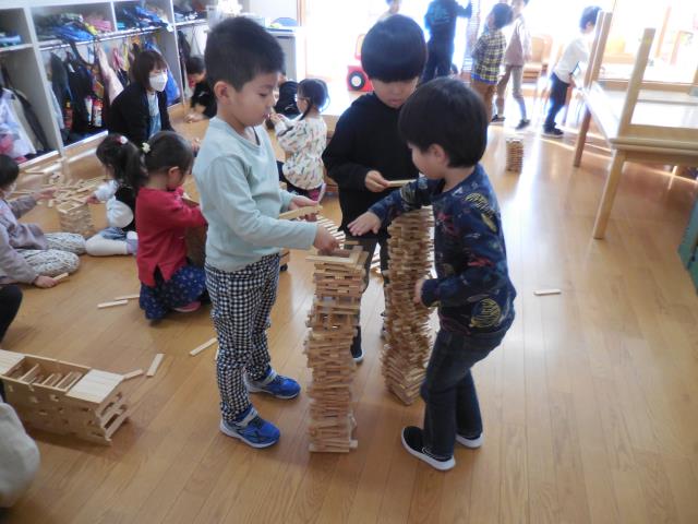 今日のさくらぐみは、『カプラ』という木の積木で遊んでいます。