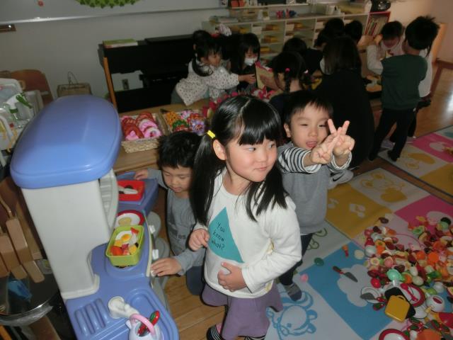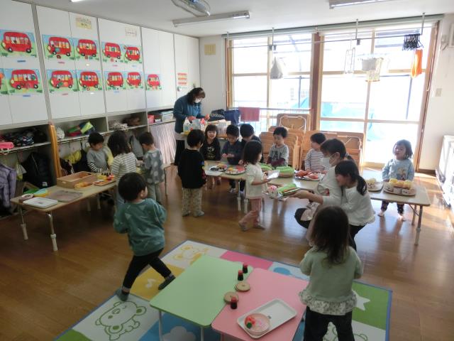 今日のちゅうりっぷぐみは、お部屋でミニごっこあそびをしています。