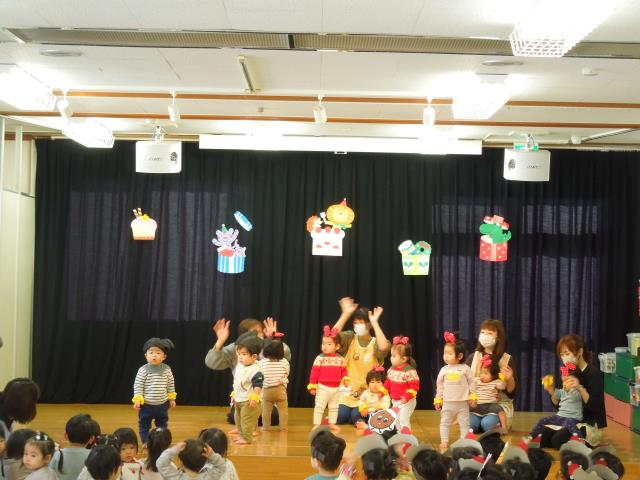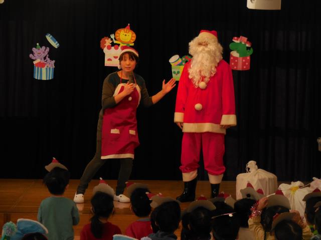 園長先生からクリスマスについてのお話を聞いたり、『あわてんぼうのサンタクロース』を歌ったり。