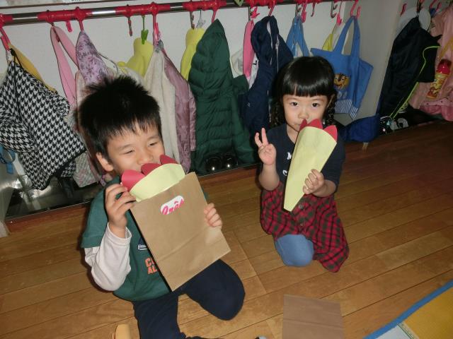 12月生まれさんと11月にお休みしていたお友だちを、みんなでお祝いしましたよ。