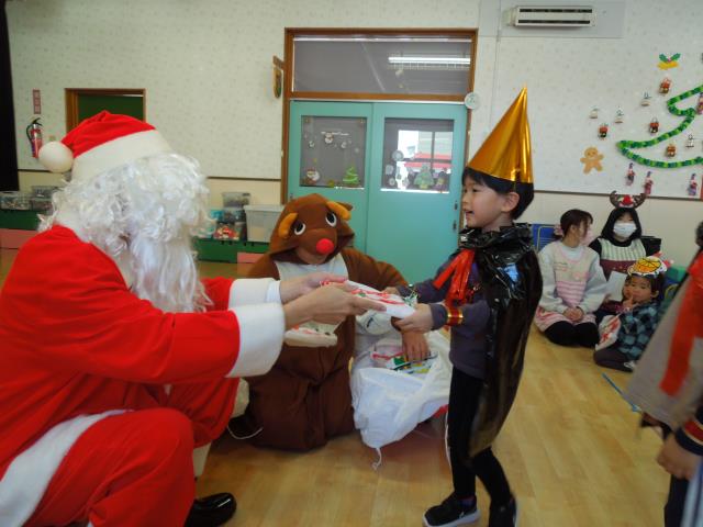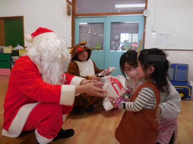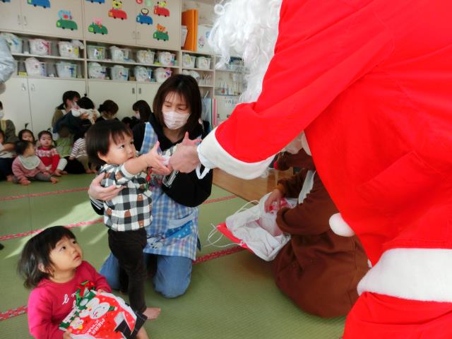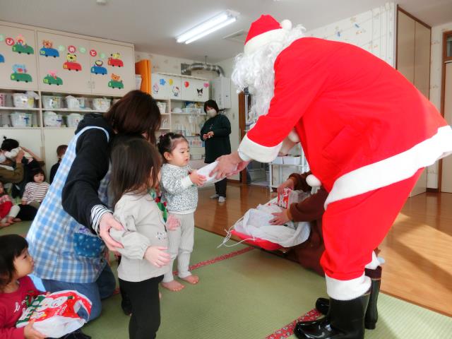 大きなサンタさんにビックリして泣いてしまうお友だちもいましたが、プレゼントはしっかりと受け取り、嬉しそうな子ども達でした。