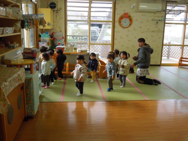 今月の出し物は、ひよこ組さんのお遊戯「おしりふりふり」でした。