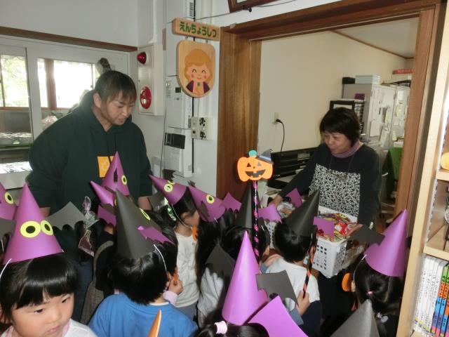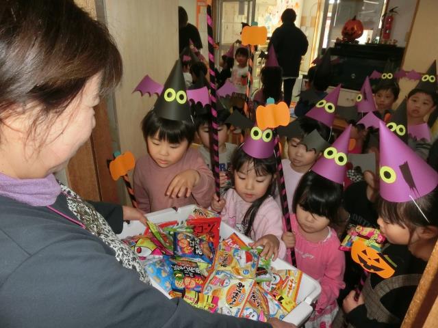 園長先生に「トリックオアトリート」と言って、好きなお菓子をもらい大喜び。